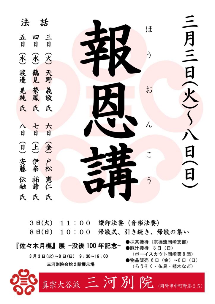2026年2月20日 三河別院報恩講(3月3日~3月8日)のお知らせ